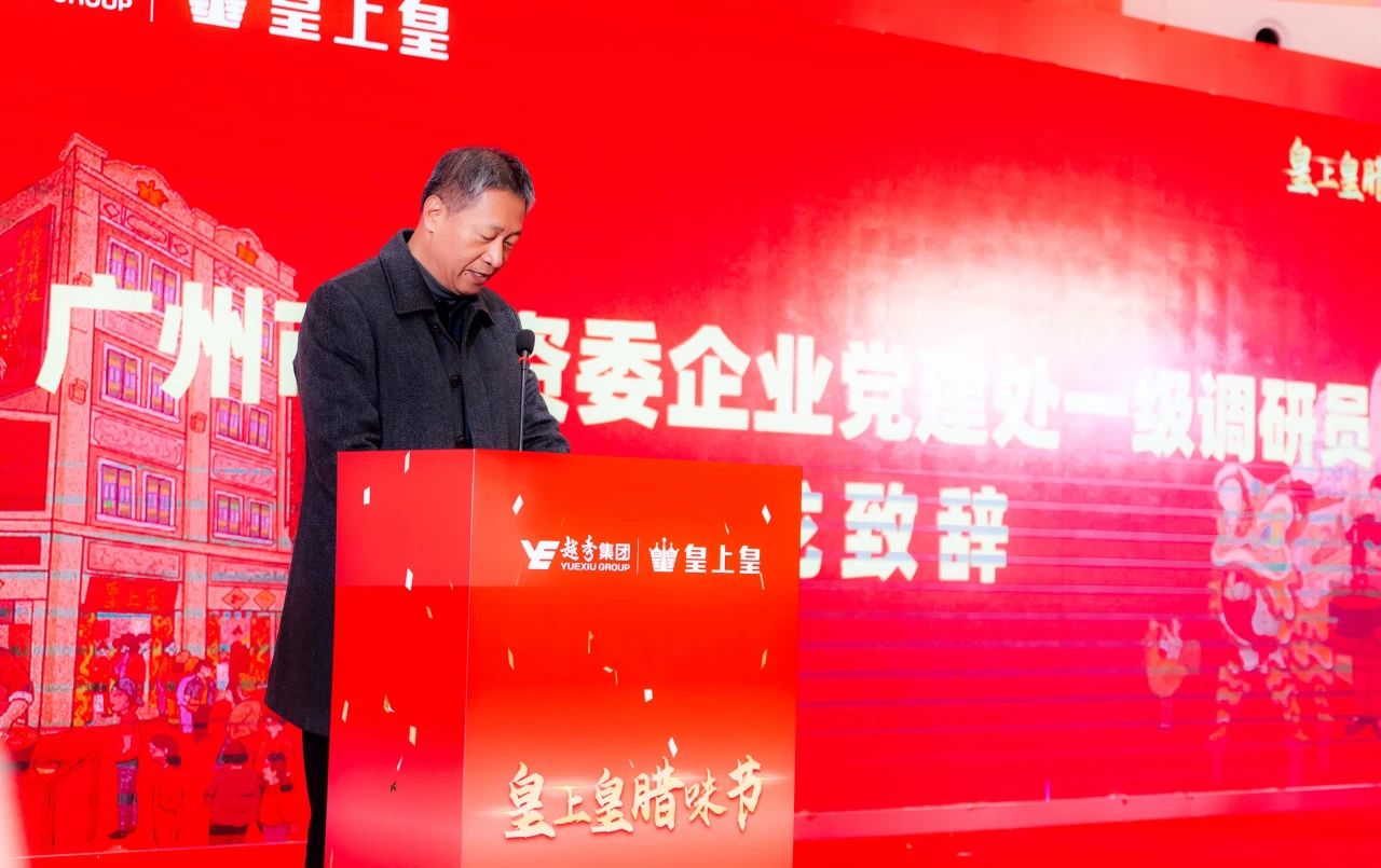 市國資委一級調研員吳龍在致辭中表達了對皇上皇作為臘味領導者業績躍上新臺階的美好祝愿,更希望嶺南臘味文化通過本次活動可以得到更廣泛、更深入、更全面的傳播。未來,國資委會繼續為“振興老字號”工程助力,助力企業為群眾帶來更深入的傳統文化體驗。