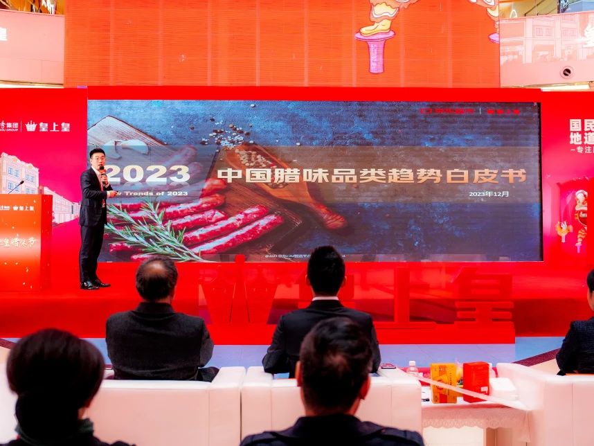 活動當日,京東集團熟食臘味品類負責人梁子宸上臺分享了《2023 中國臘味品類發展趨勢白皮書》。該份權威報告,由皇上皇與京東集團聯袂制作,洞察臘味市場趨勢,探討臘味行業發展趨勢。隨后,現場發布了皇上皇與京東集團聯合開發的“龍騰盛世”臘味禮盒。該款禮盒精選了皇上皇4款拳頭產品,設計精美大方,且飽含對龍年春節的祝福。幸福年禮,呈上滿滿心意!