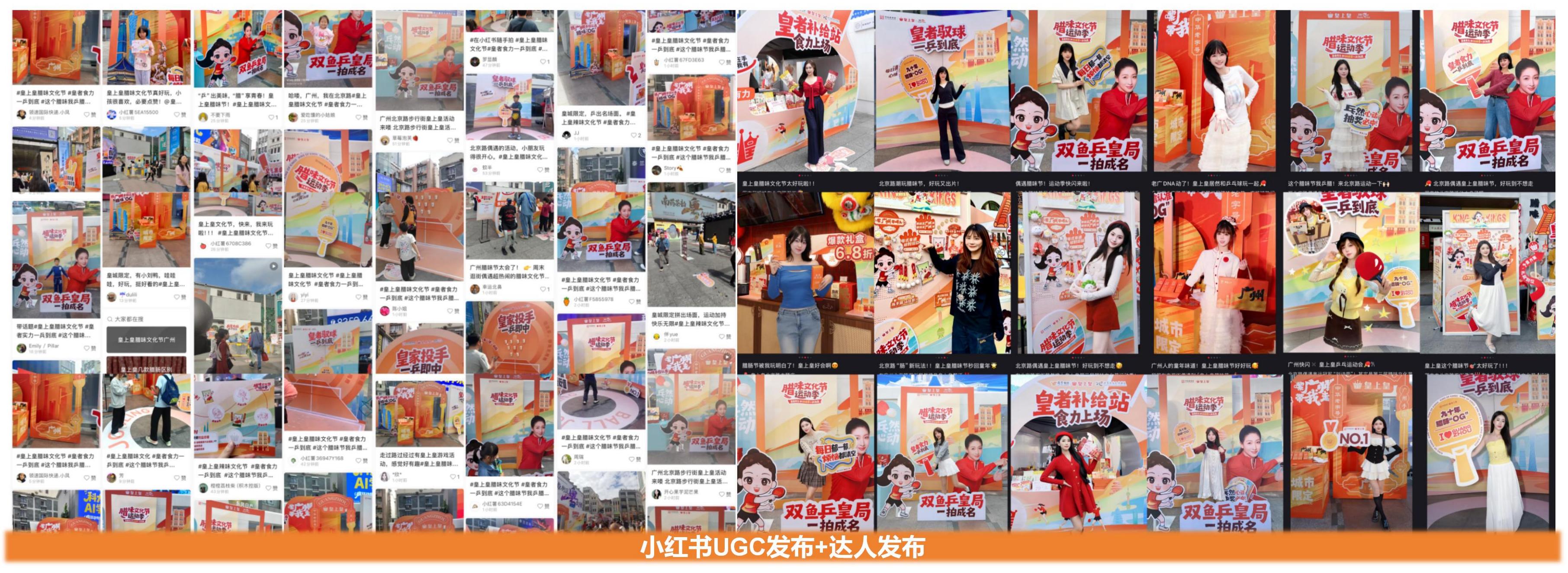 聚焦皇上皇北京路地標店打造多維度沉浸式體驗場景,推動流量聚合與消費轉化。精心規劃3大乒乓球主題互動區與2大主題打卡區:互動區通過乒乓球趣味玩法傳遞拼搏、快樂的體育精神,打卡區聚焦品牌產品價值展示,助力傳播裂變;600+用戶完成集章挑戰,產出UGC內容超500條,強化品牌年輕化形象;通過集章領卡、互動體驗、門店兌獎的動線設計,結合主舞臺演藝持續引流,門店客流量較平日提升80%;皇者補給站、休閑零食站與主門店聯動銷售,核心臘味、零食產品熱銷,帶動門店當天營收大幅增長。#這個臘味節我乒臘 ##一口冠軍味薄鹽更對胃#等話題在微博、小紅書持續發酵,全方位拓寬品牌傳播邊界。