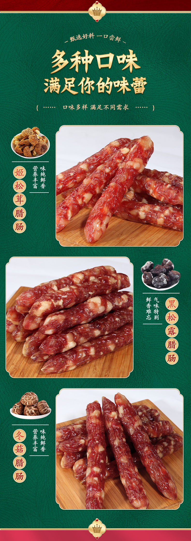 姬松茸臘腸250g、黑松露臘腸250g、冬菇臘腸250g